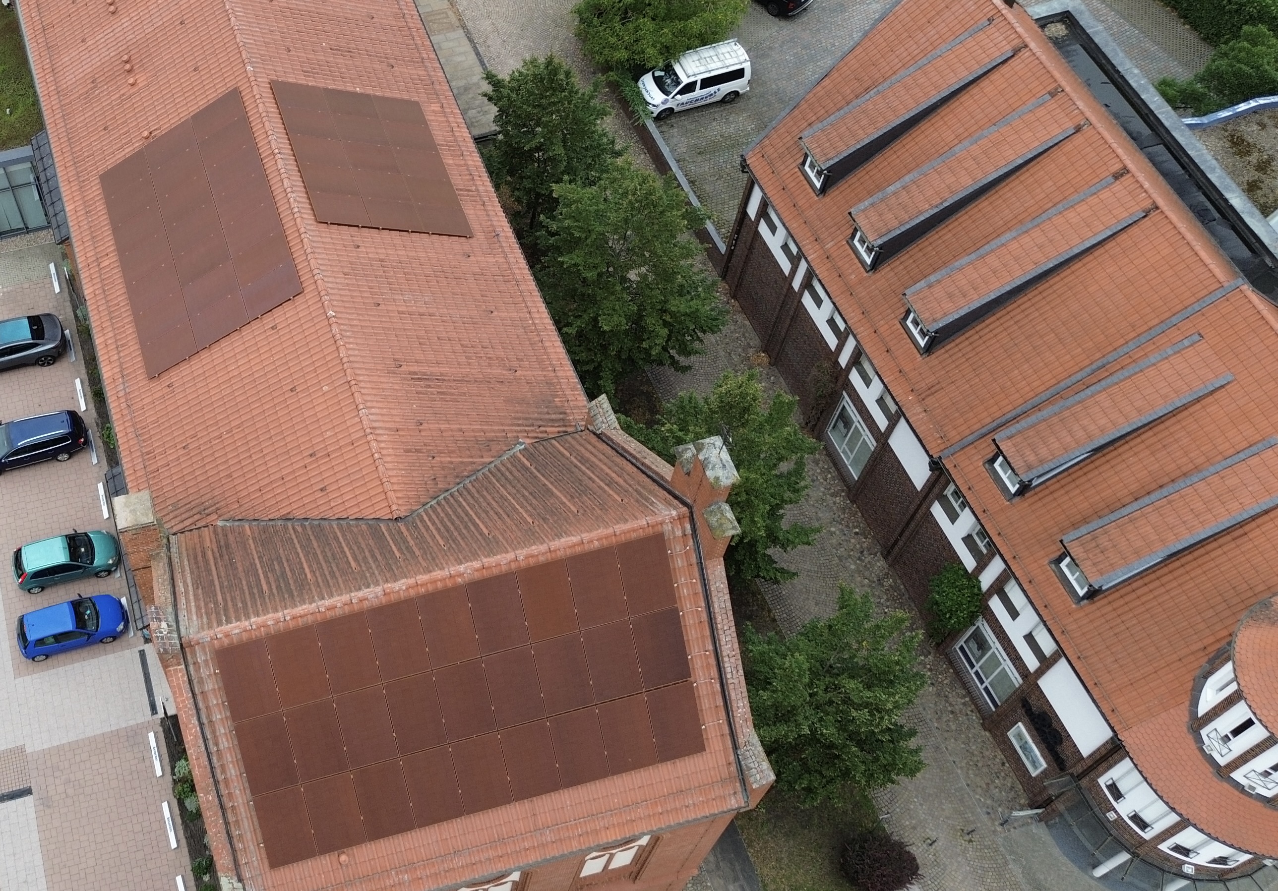 Besonders war die Auswahl der Module. Diese mussten ziegelrot sein und sich harmonisch in das historische Stadtbild einfügen. Damit wurde ein Kompromiss gefunden, der sowohl Klima- als auch Denkmalschutz gerecht wird.